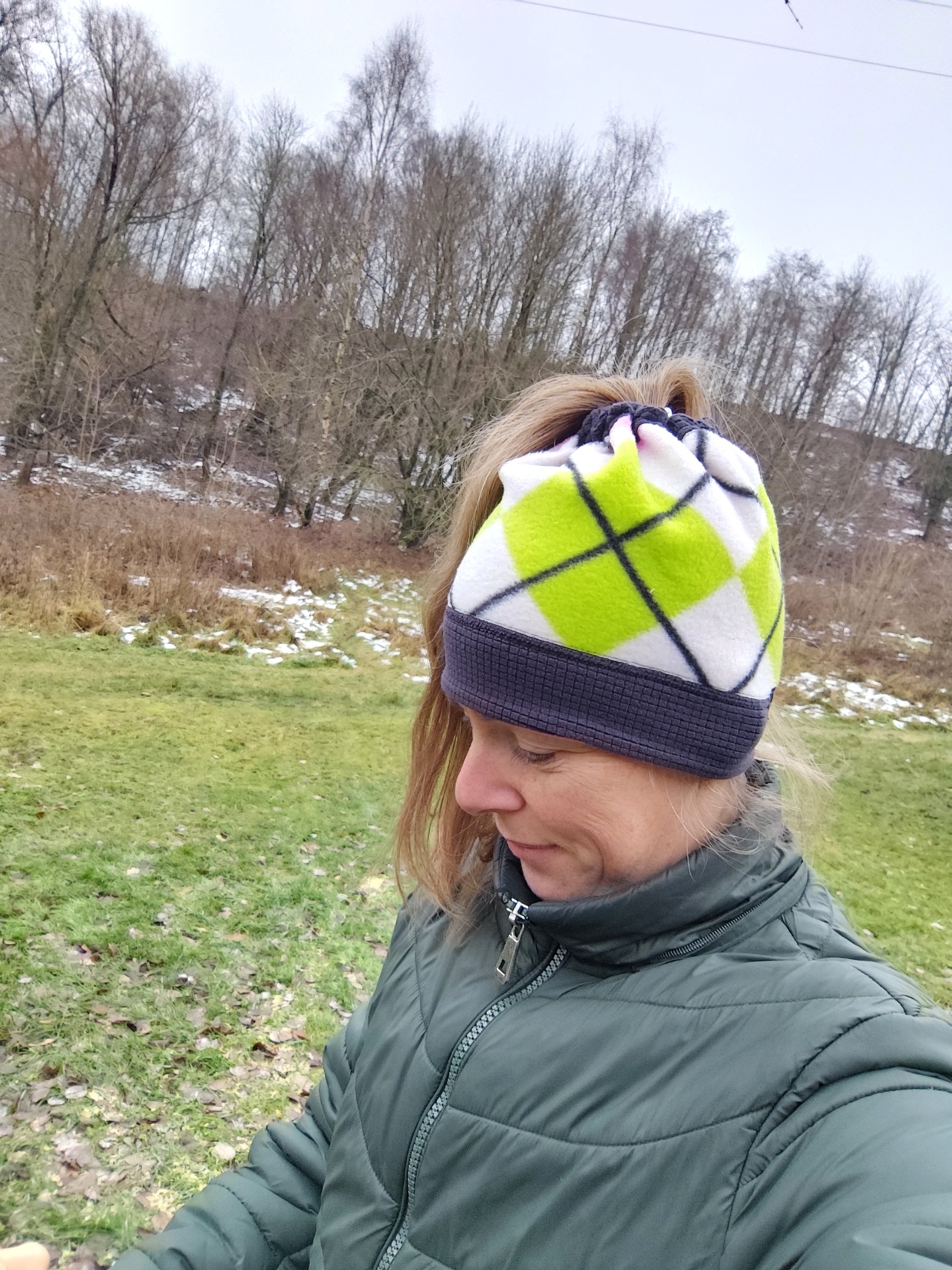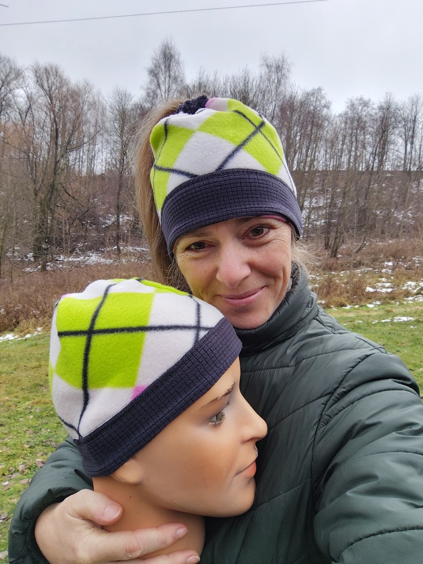 Rozměry: výška 22 cm, obvod 52 cm v nenataženém stavu - mírně pružné ... zkoušeno na hlavu s obvodem 56 cm