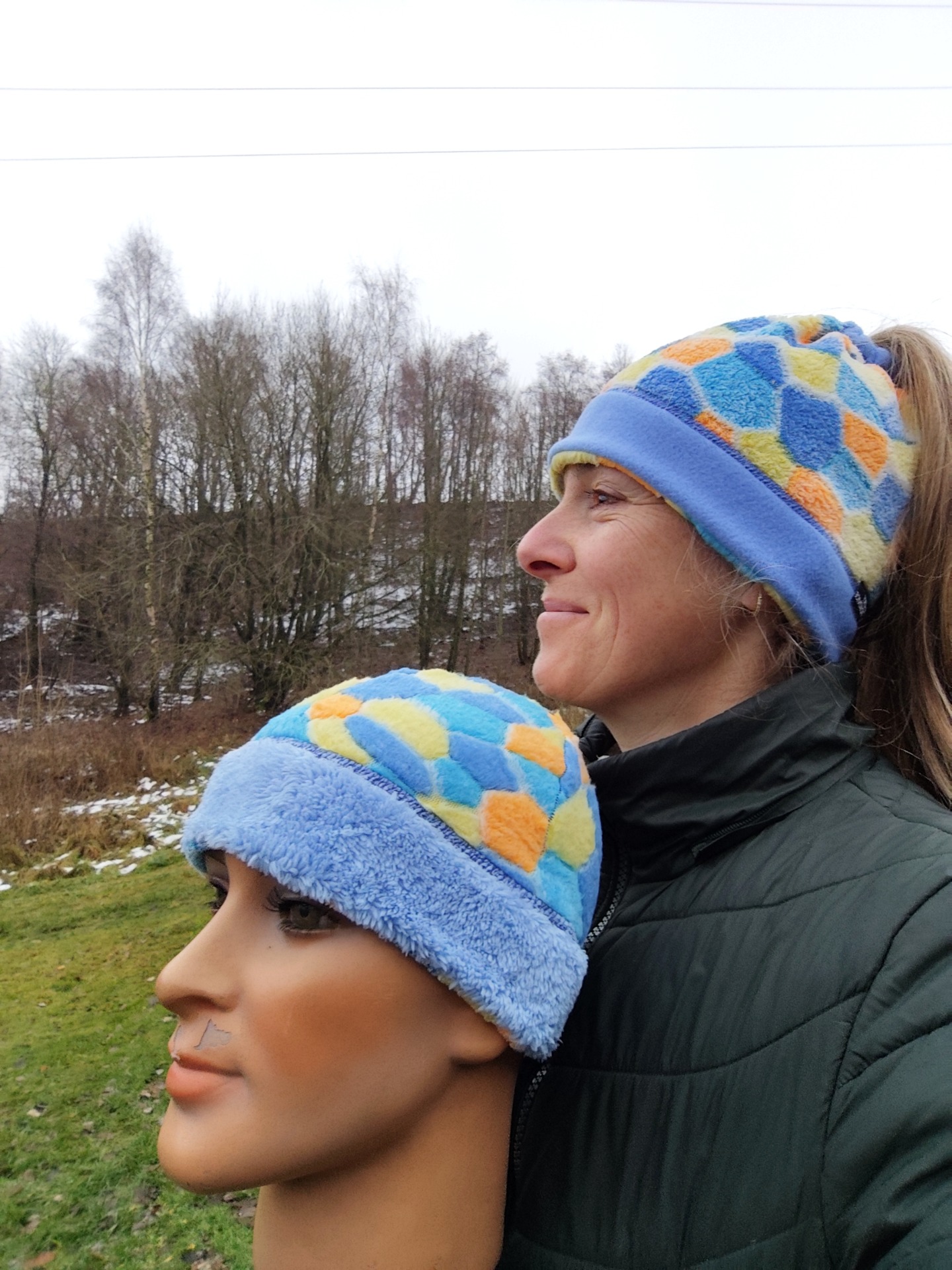 Rozměry: výška 23 cm, obvod 55 cm v nenataženém stavu - mírně pružné ... zkoušeno na hlavu s obvodem 56 cm