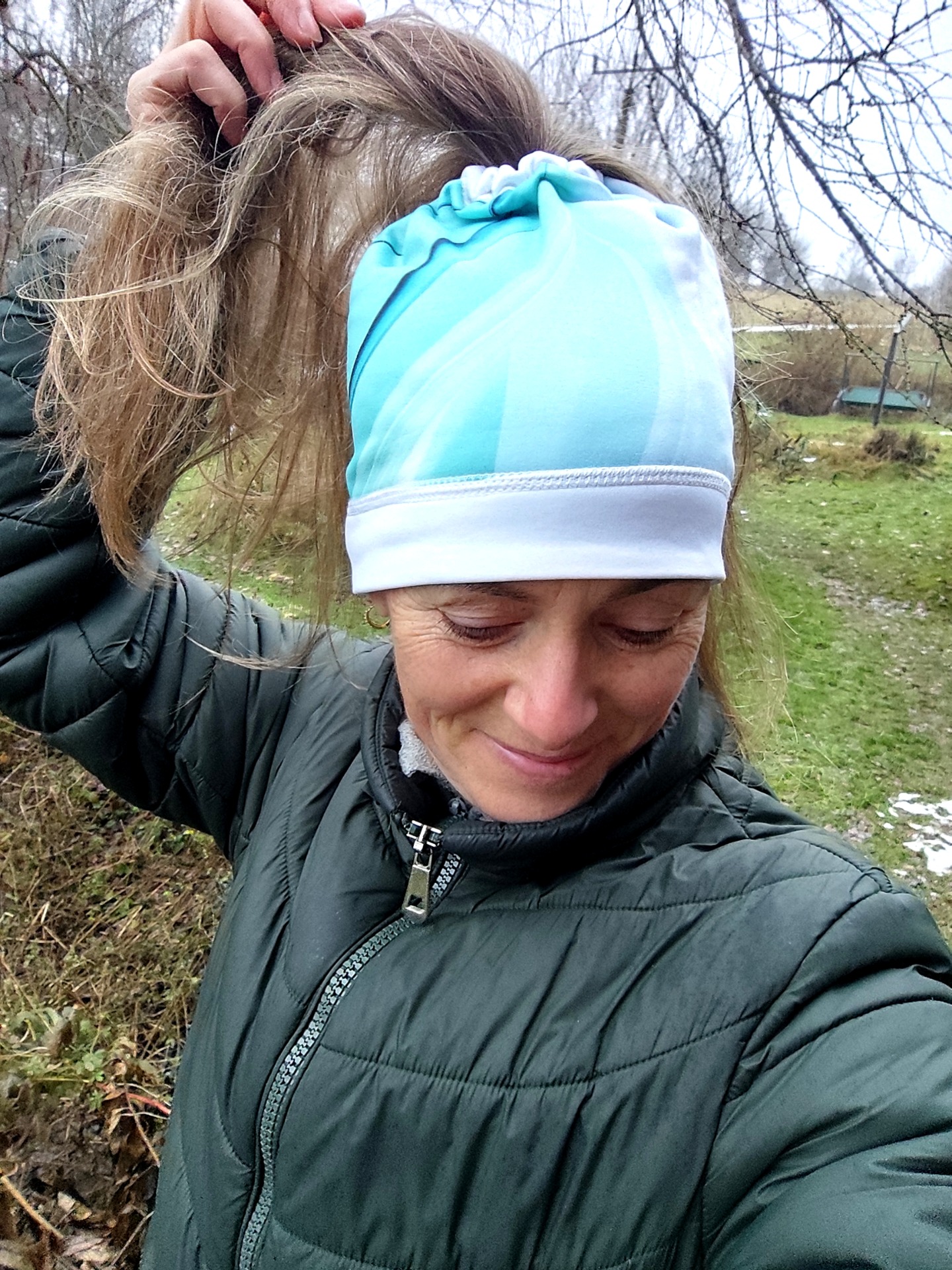 Rozměry: výška 23 cm, obvod 53 cm v nenataženém stavu - pružné ... zkoušeno na hlavu s obvodem 56 cm