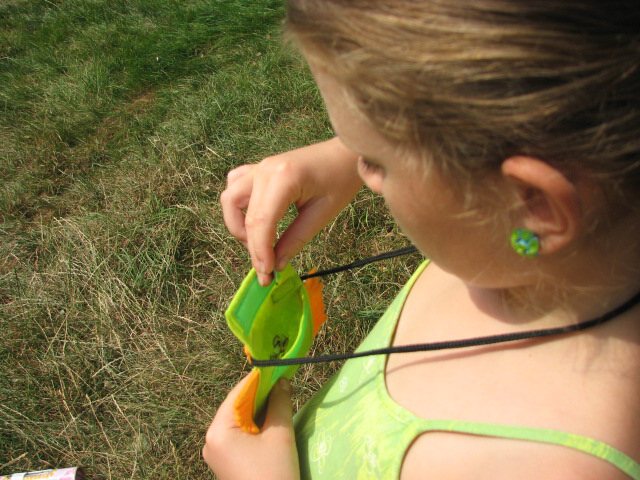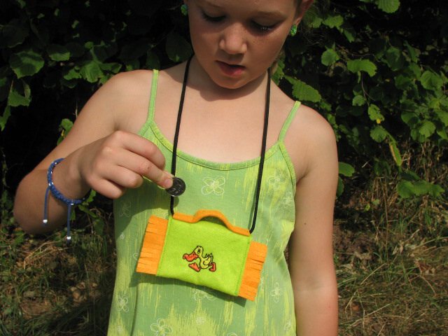 " Dostala jsem od dědečka korunky, tak mi je kačenko ohlídej a až si za ně koupím v obchodě sušenku, a půjdeme s dědou zpátky, dám ti ten pěkný lísteček, co tu leží."