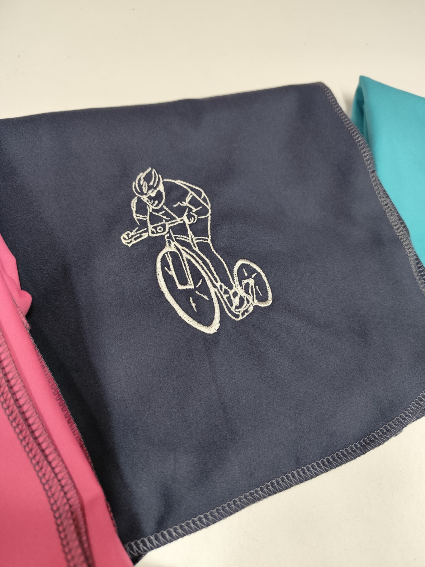 Rychleschnoucí ručník se zavazováním a autorskou výšivkou.