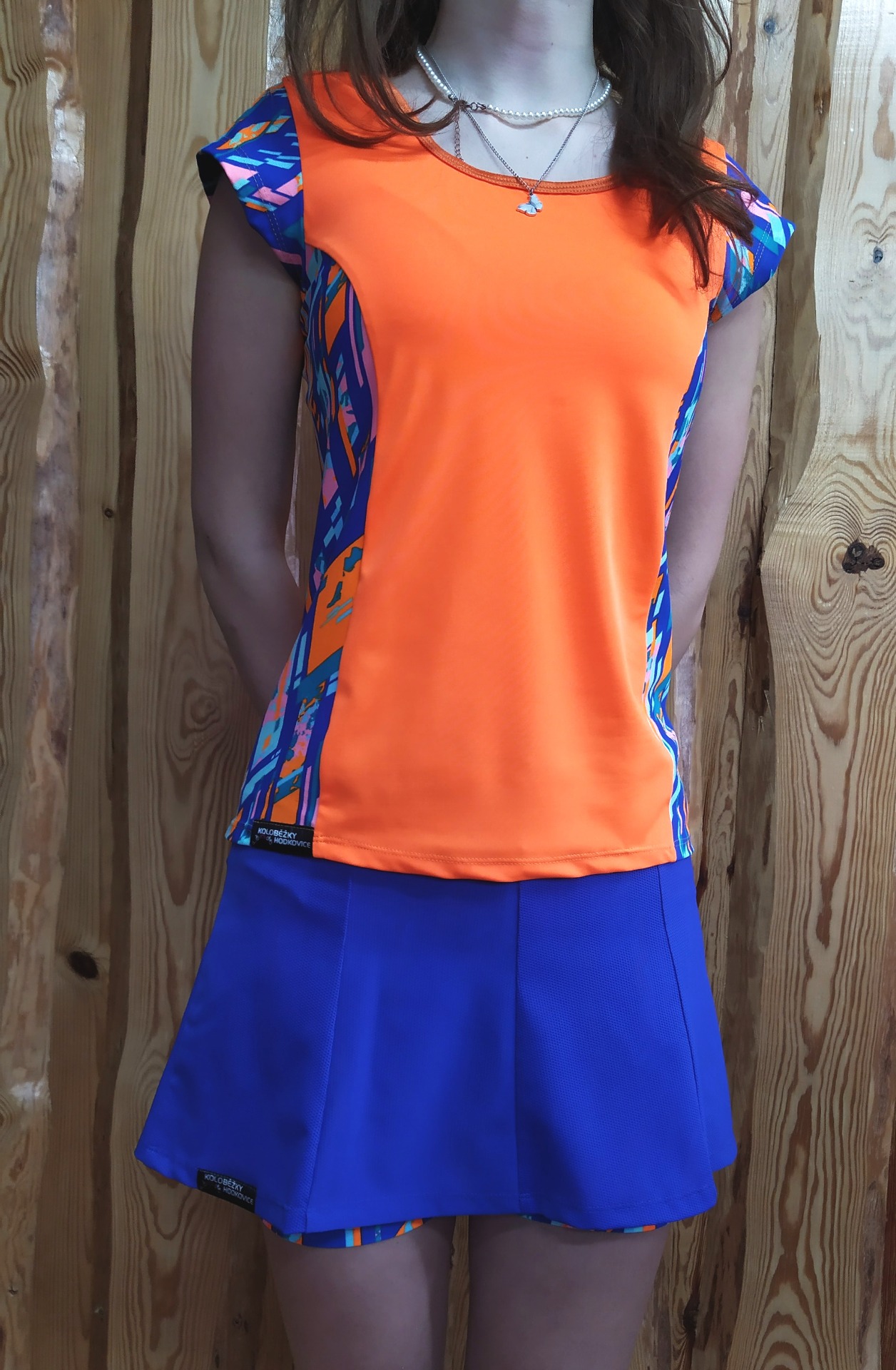 Sportovní tričko z funkčního materiálu Geometrie a oranžová