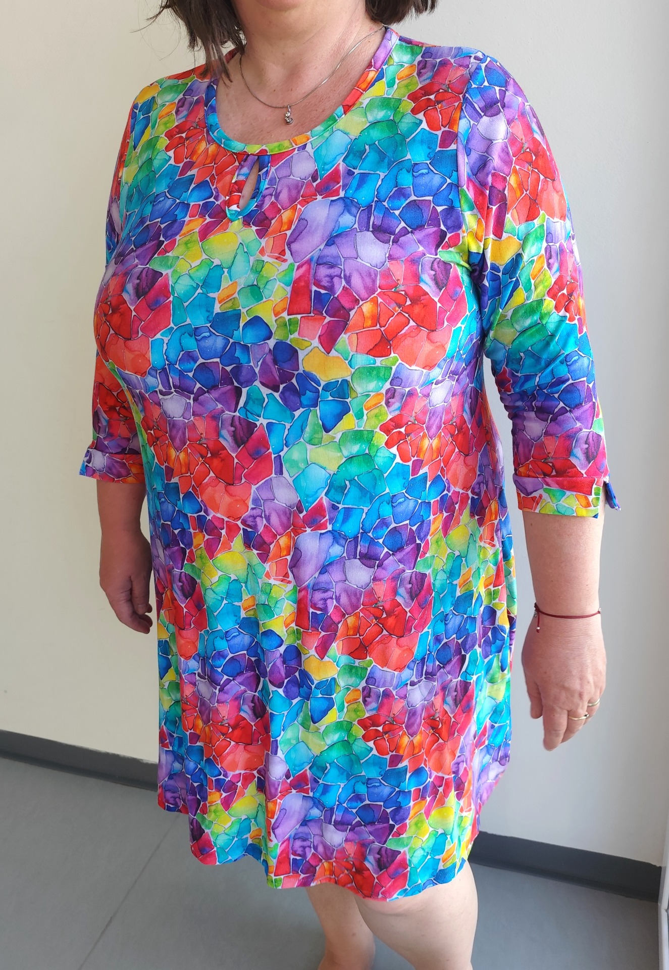 Tunika s 3/4 rukávem, kapsy ve švech, rozparky v bočních švech i v manžetách na rukávech.