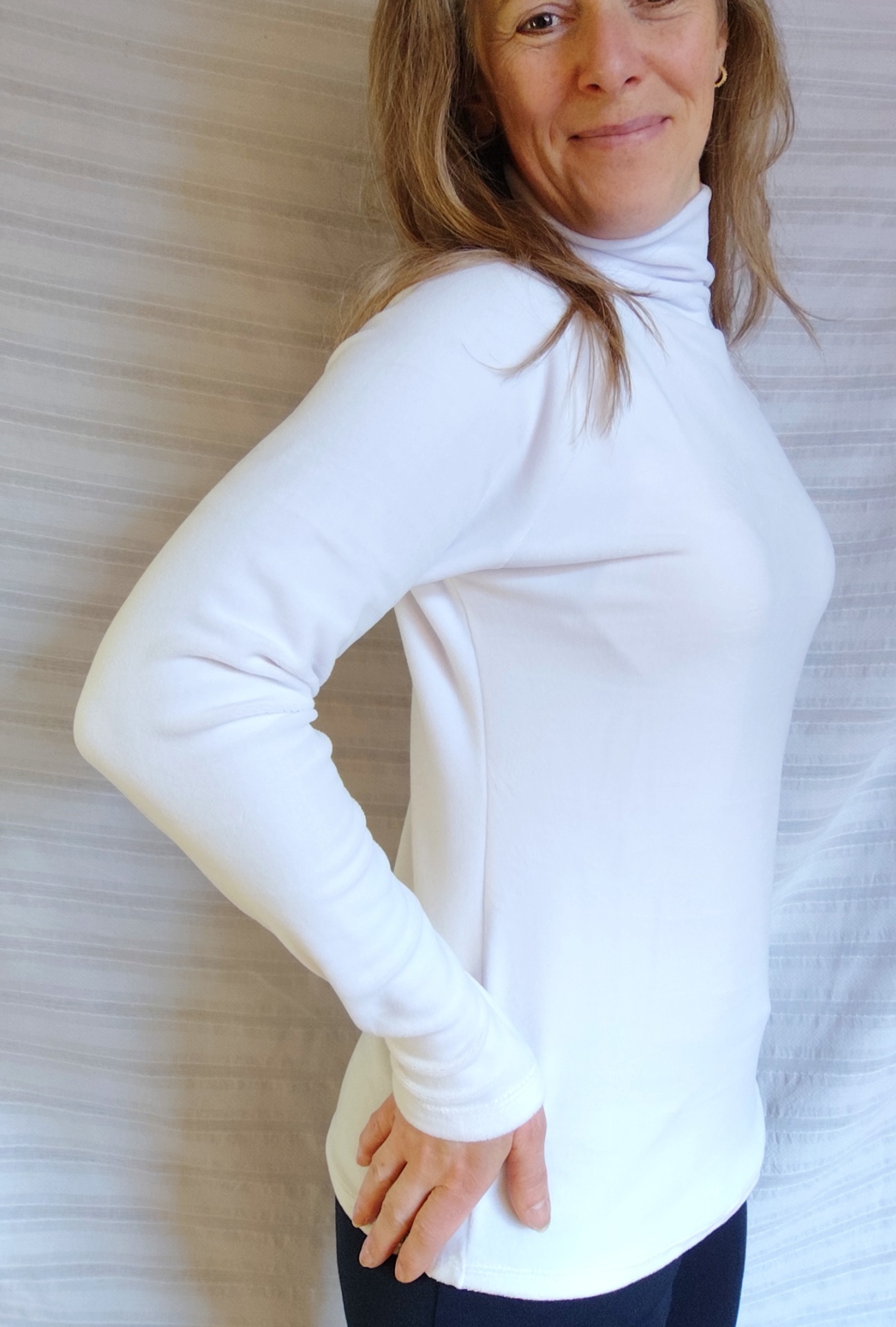 délka 68 cm, výška roláku 12 cm, délka raglánového rukávu (tj. od roláku) 70 cm