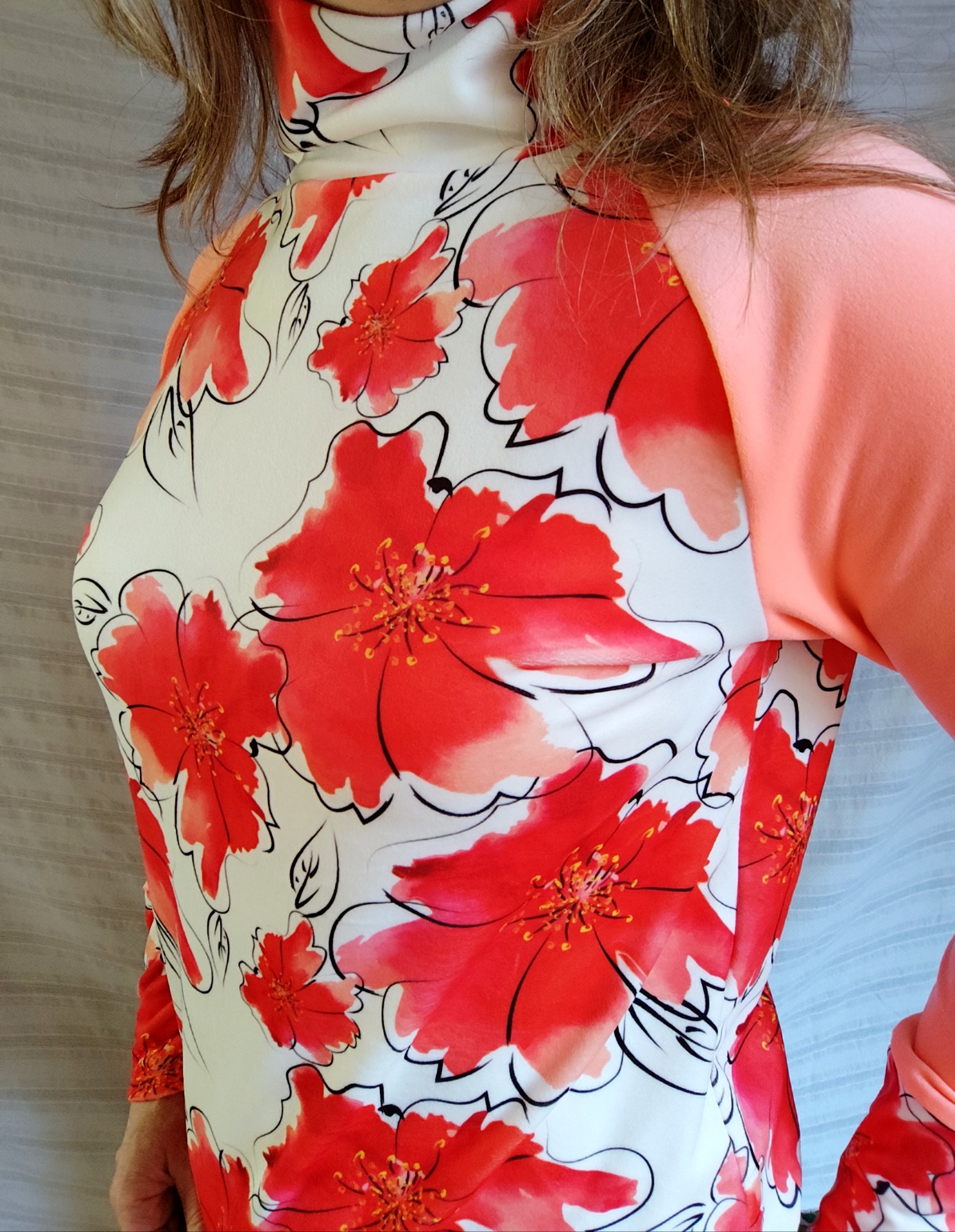 délka 64 cm, výška roláku 10 cm, délka raglánového rukávu (tj. od roláku) 68 cm
