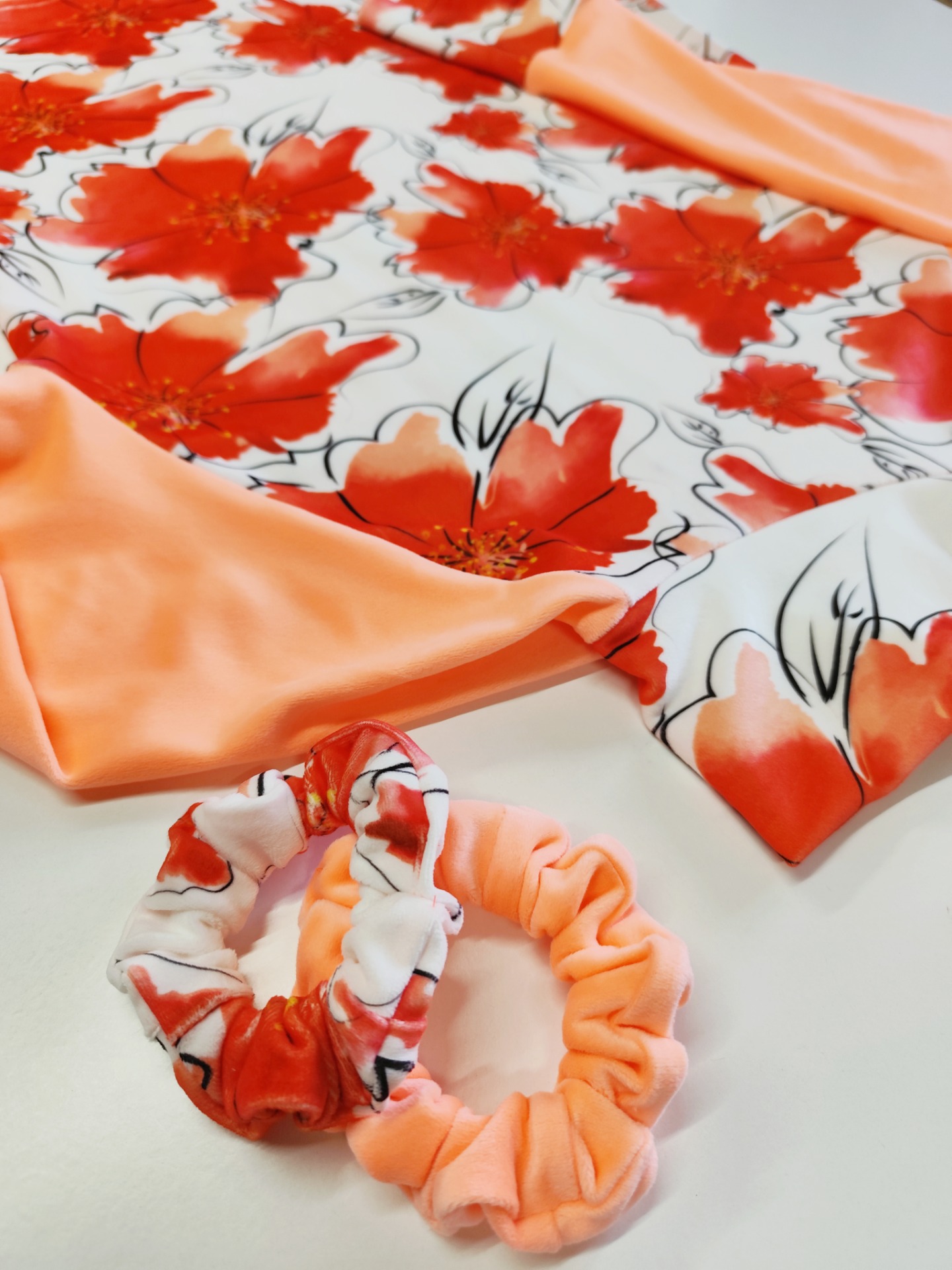 Gumička do vlasů ze stejného materiálu jako dárek.