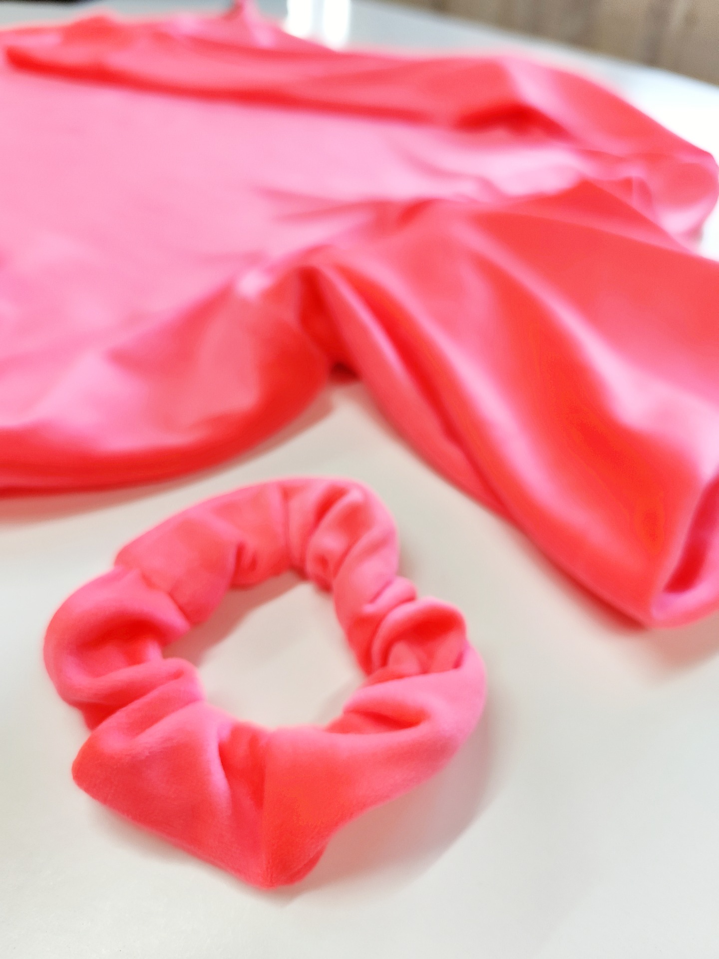 Gumička do vlasů ze stejného materiálu jako dárek.