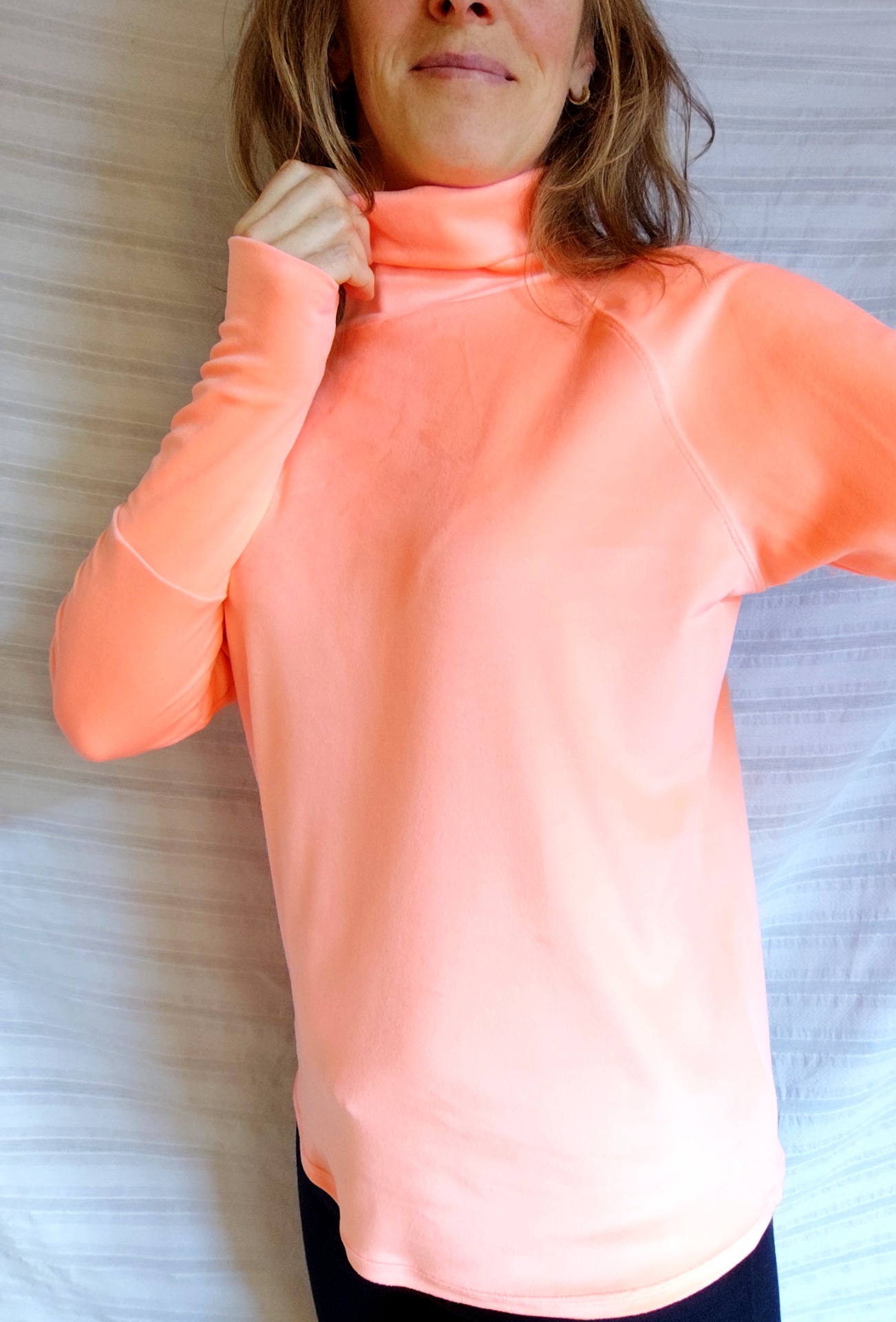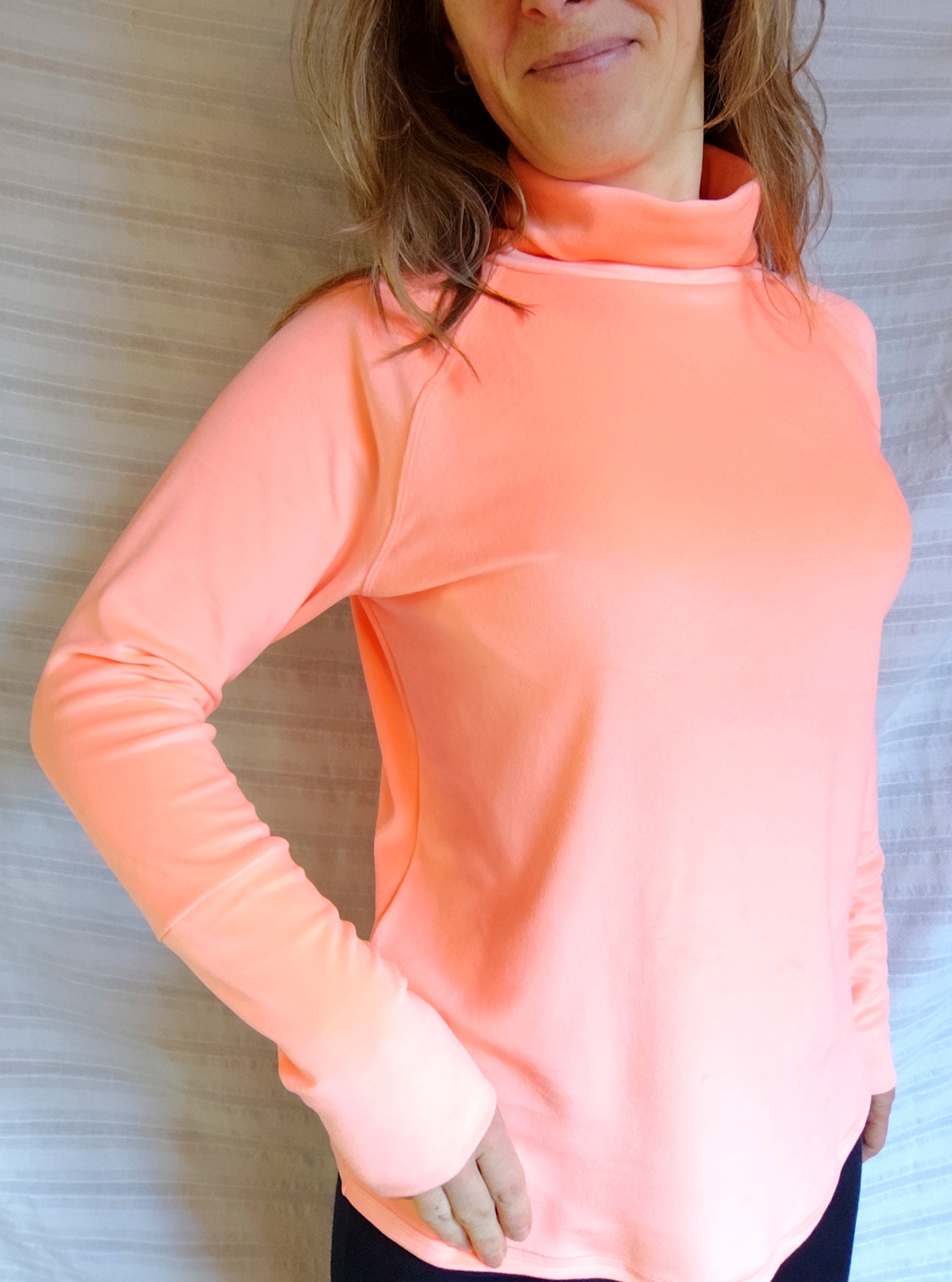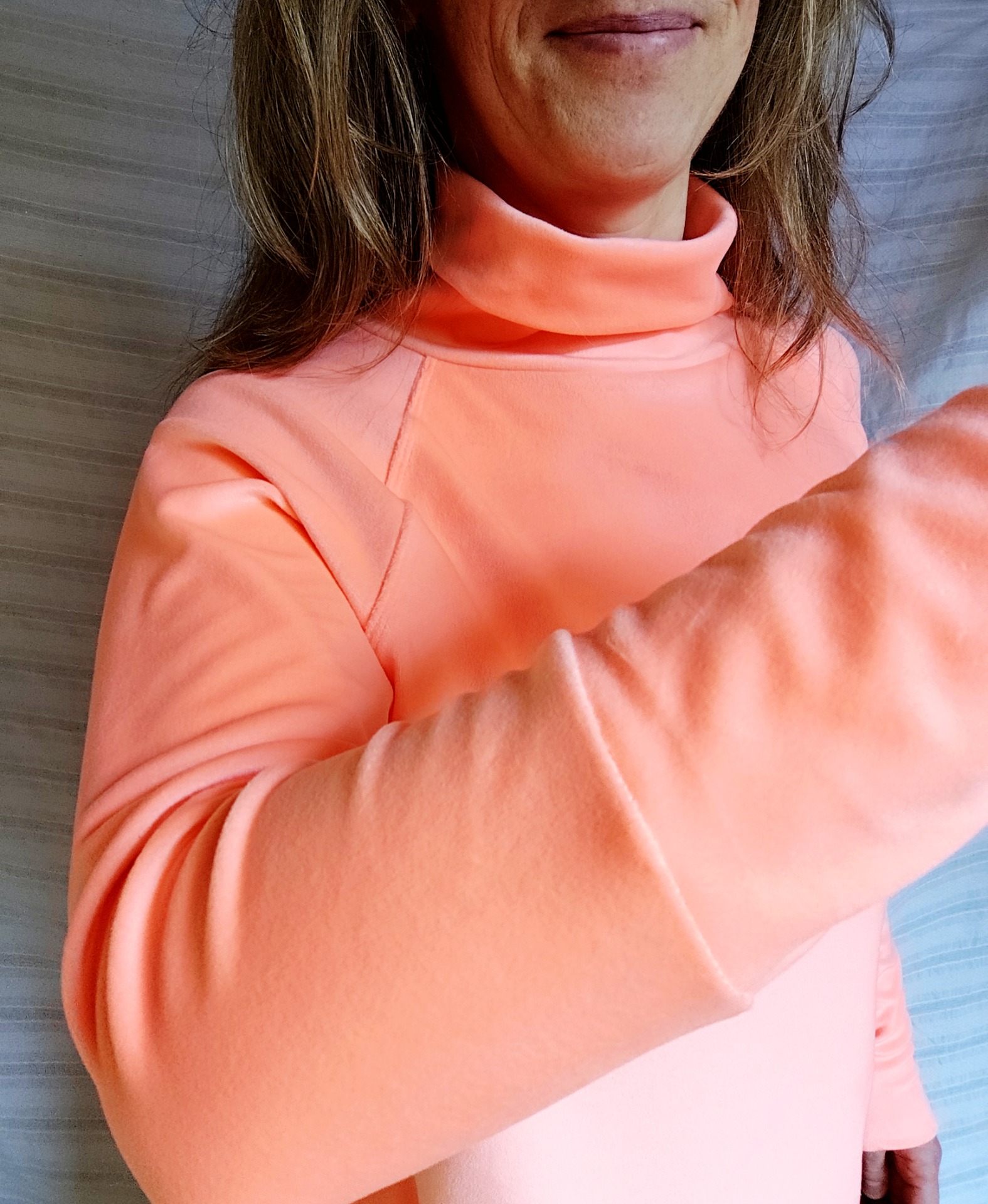 délka 65 cm, výška roláku 14 cm, délka raglánového rukávu (tj. od roláku) 70 cm