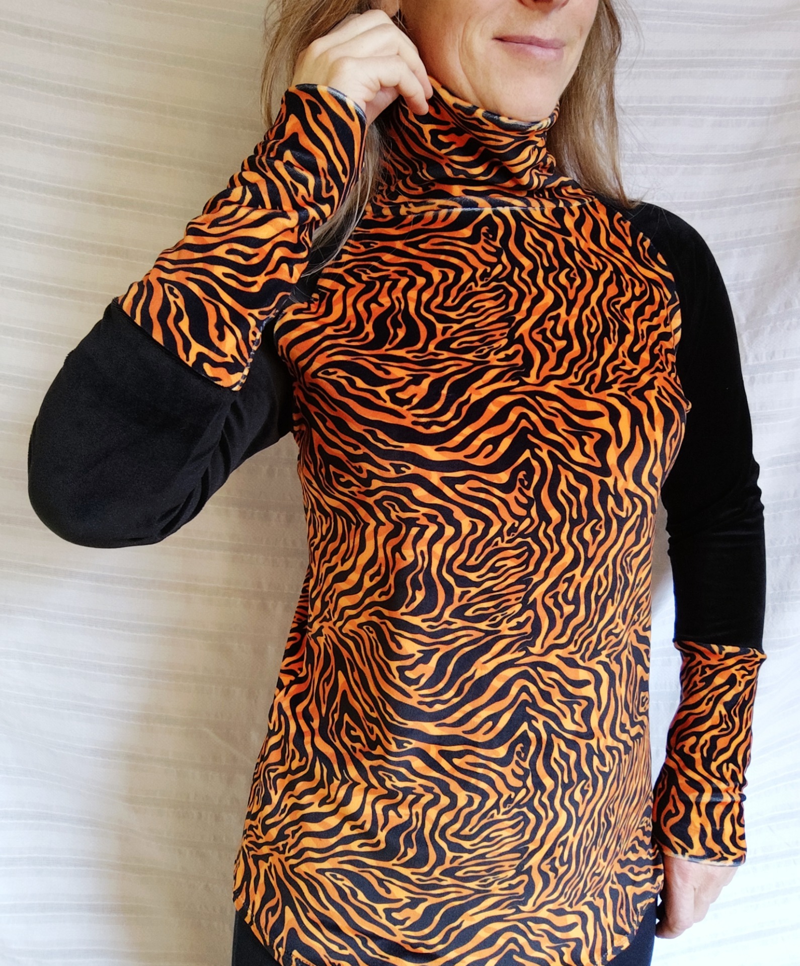 délka 66 cm, výška roláku 12 cm, délka raglánového rukávu (tj. od roláku) 71 cm