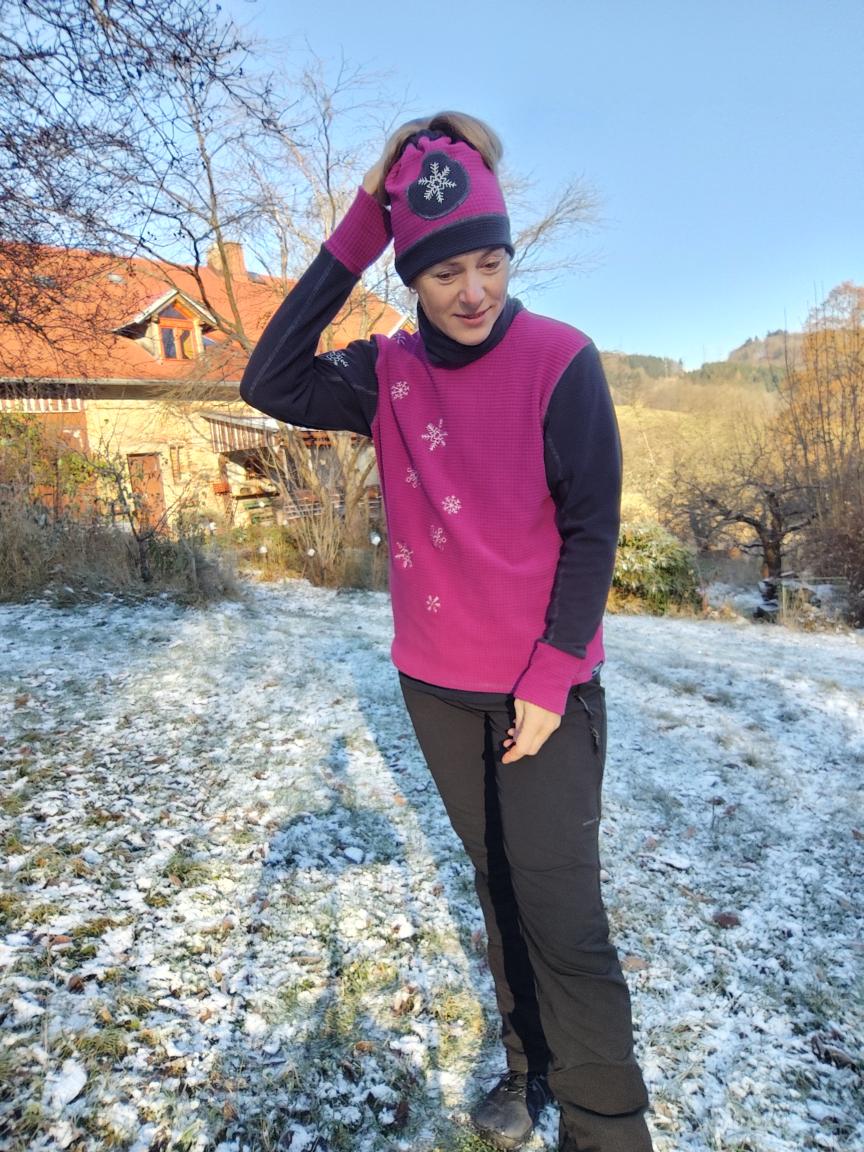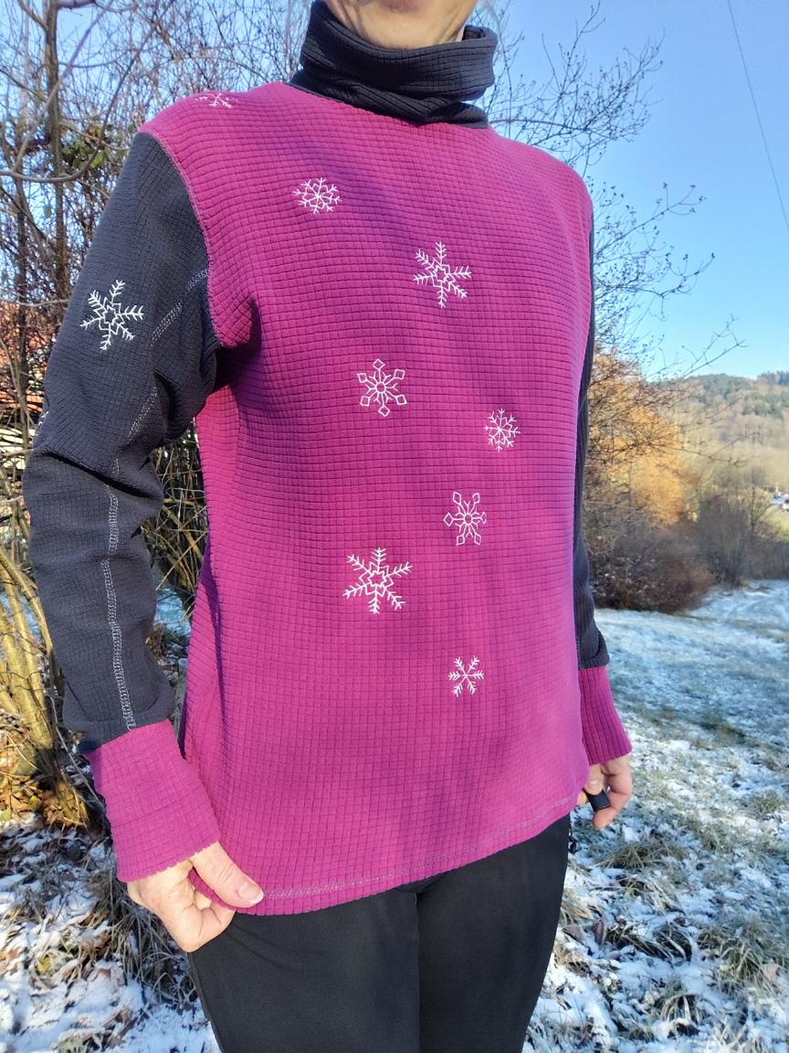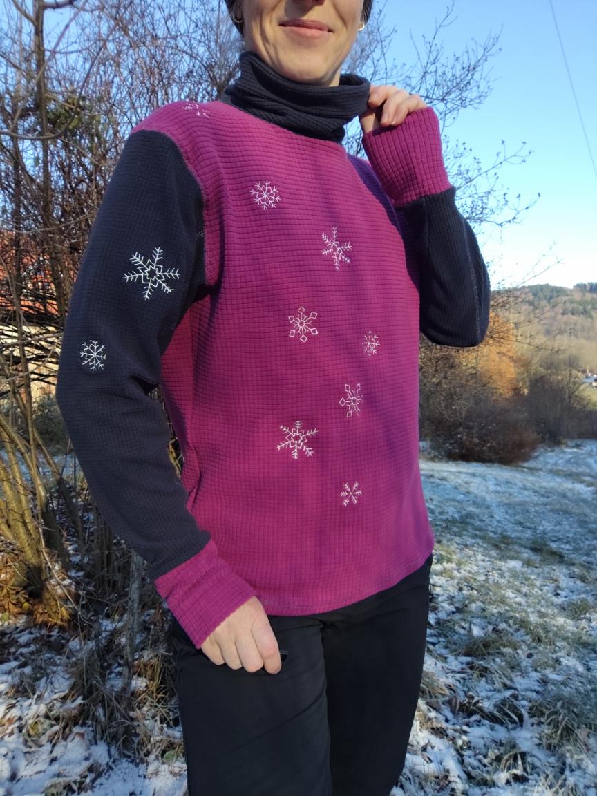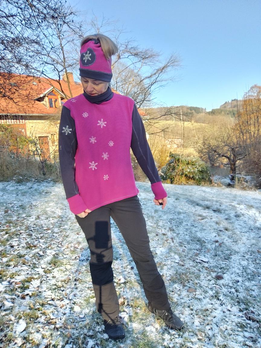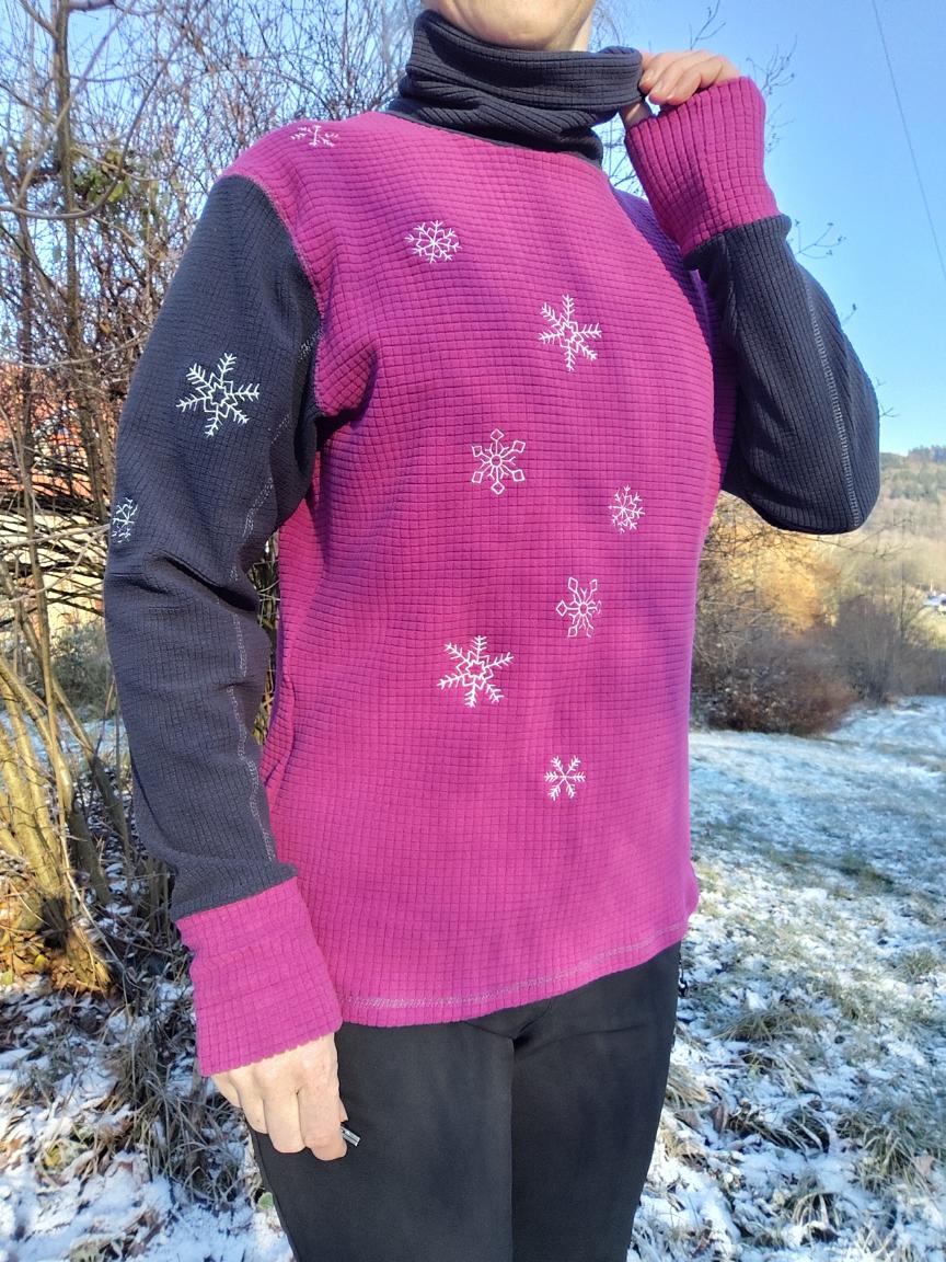 Mikina s rolákem Zase sněží, funkční materiál s perforací v barvě šedé a vínové, vel. L44/46