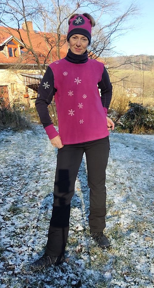 Zdobená vyšívanými vločkami - má kresba převedená do stehů